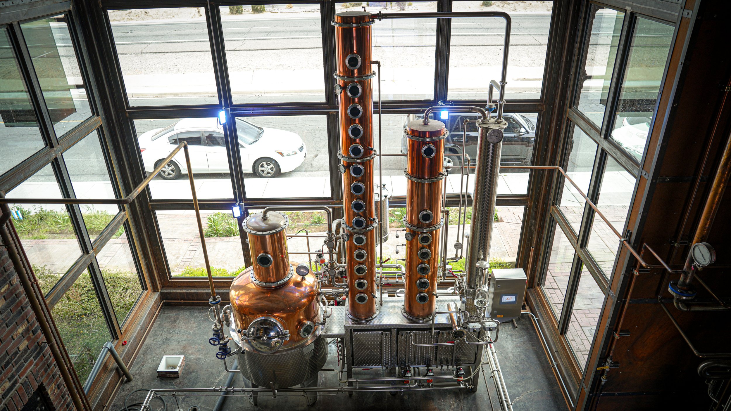 Our reaction, fermentation, and storage systems were fabricated in Hungary. We mill, mash, ferment, distill, barrel, and bottle on site. Half of our barrels are stored in an open-air warehouse where the desert climate encourages the aging process due to the large fluctuation of temperatures. Every barrel is tested regularly, ensuring every batch is finished at peak maturity. Every batch is unique because we emphasize quality over quantity. Our team of distillers monitor every detail along the spirits journey, from grain to bottle.